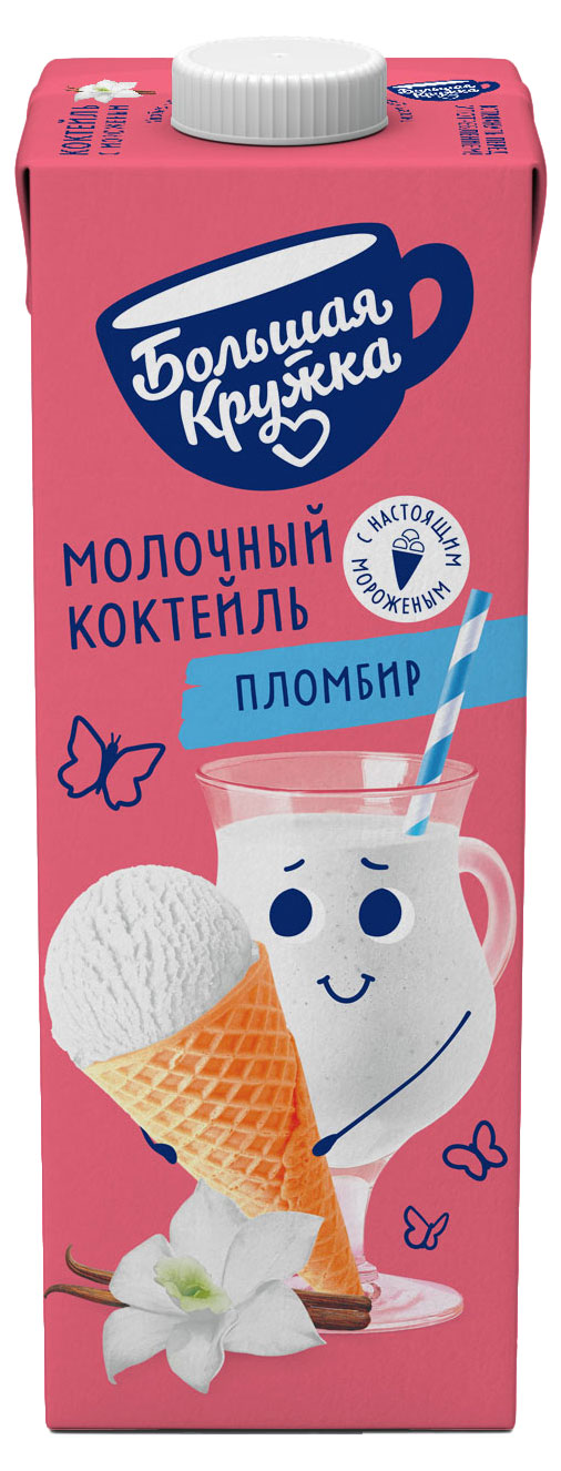 Коктейль молочный Большая Кружка мороженое пломбир изготовлен из свежего коровьего молока с добавлением натурального мороженого. В процессе производства подвергается ультрапастеризации, позволяющей продлить срок годности напитка и уничтожить все патогенные бактерии. Обладает приятным, в меру сладким вкусом и нежной консистенцией. Он не только утолит жажду, но и подарит истинное наслаждение всем сладкоежкам. Современная упаковка тетрапак с удобной отвинчивающейся крышкой надежно сохраняет свежесть и вкусовые качества коктейля. Рекомендуется встряхнуть перед употреблением. «Большая Кружка» – это богатый ассортимент вкусных, полезных и качественных молочных продуктов, которые подходят для ежедневного питания всей семьи.