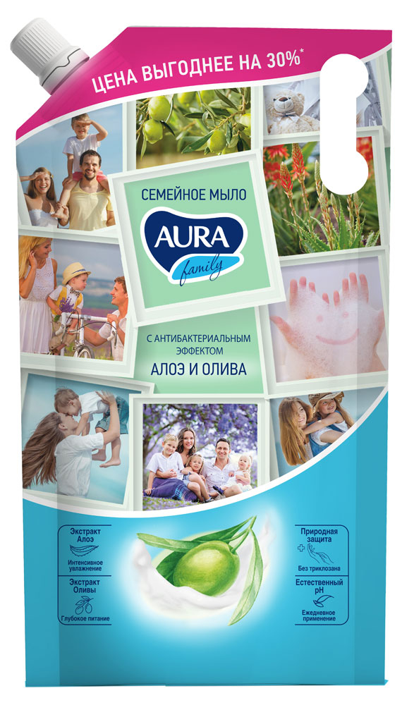 Мыло жидкое Aura Family Алоэ антибактериальное, 1 л