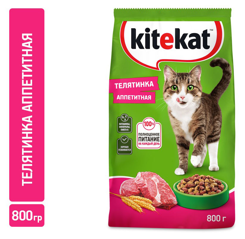 Сухой корм для кошек Kitekat Телятинка аппетитная, 800 г