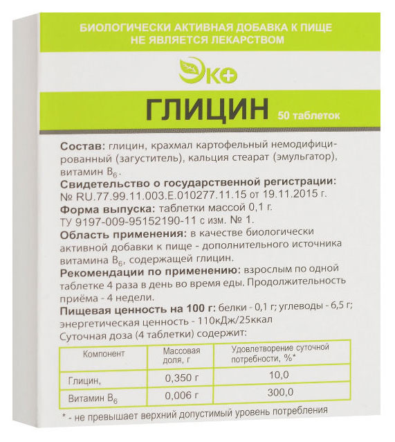 Глицин «Эко» таблетки, 50 шт