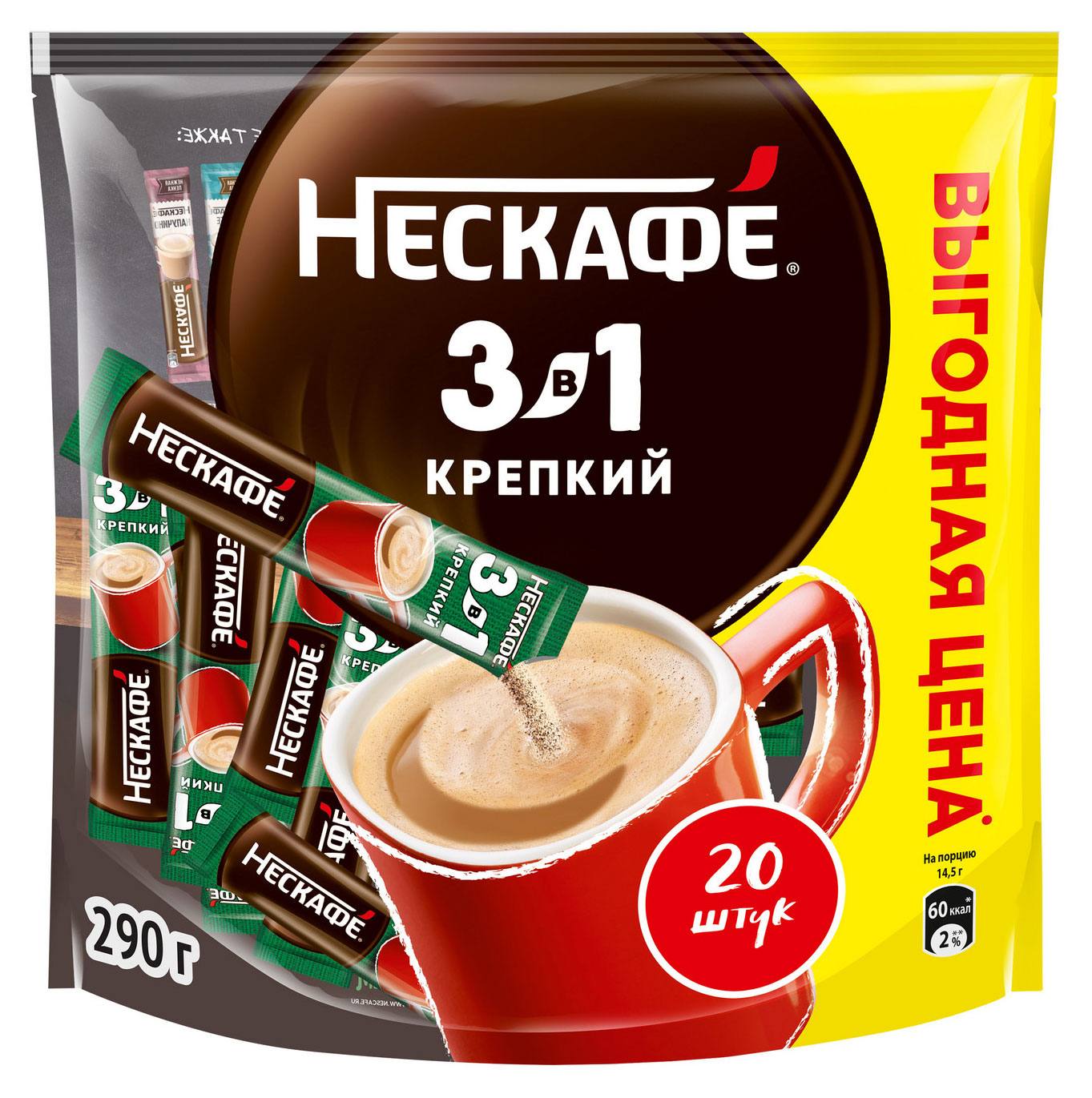 Кофейный напиток «Нескафé» растворимый 3в1 Крепкий, 20 x14,5 г