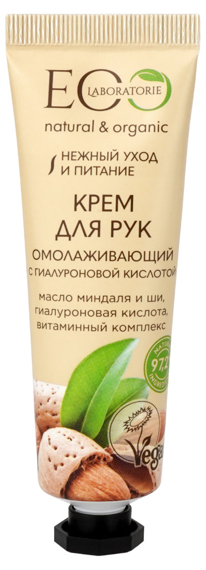 Крем для рук EO Laboratorie Омолаживающий с гиалуроновой кислотой, с натуральными питательными ингредиентами, восстанавливает кожу, придает ей упругость и гладкость, а также насыщает клетки кожи влагой, тем самым активирует процессы ее омоложения. Защищает от воздействия неблагоприятных факторов: солнца, ветра, высоких и низких температур.