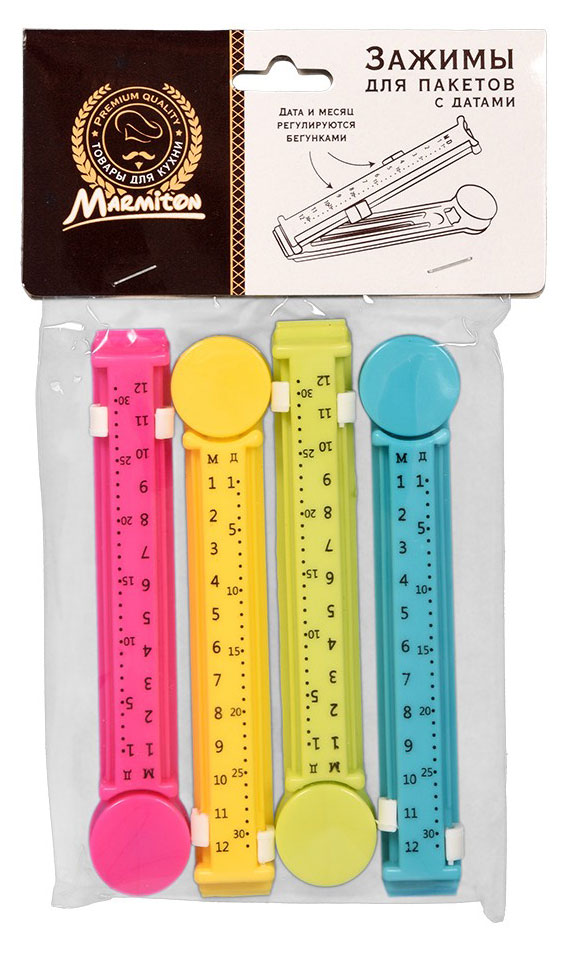 Набор зажимов для пакетов Marmiton с датами 4 шт, 10,5 см