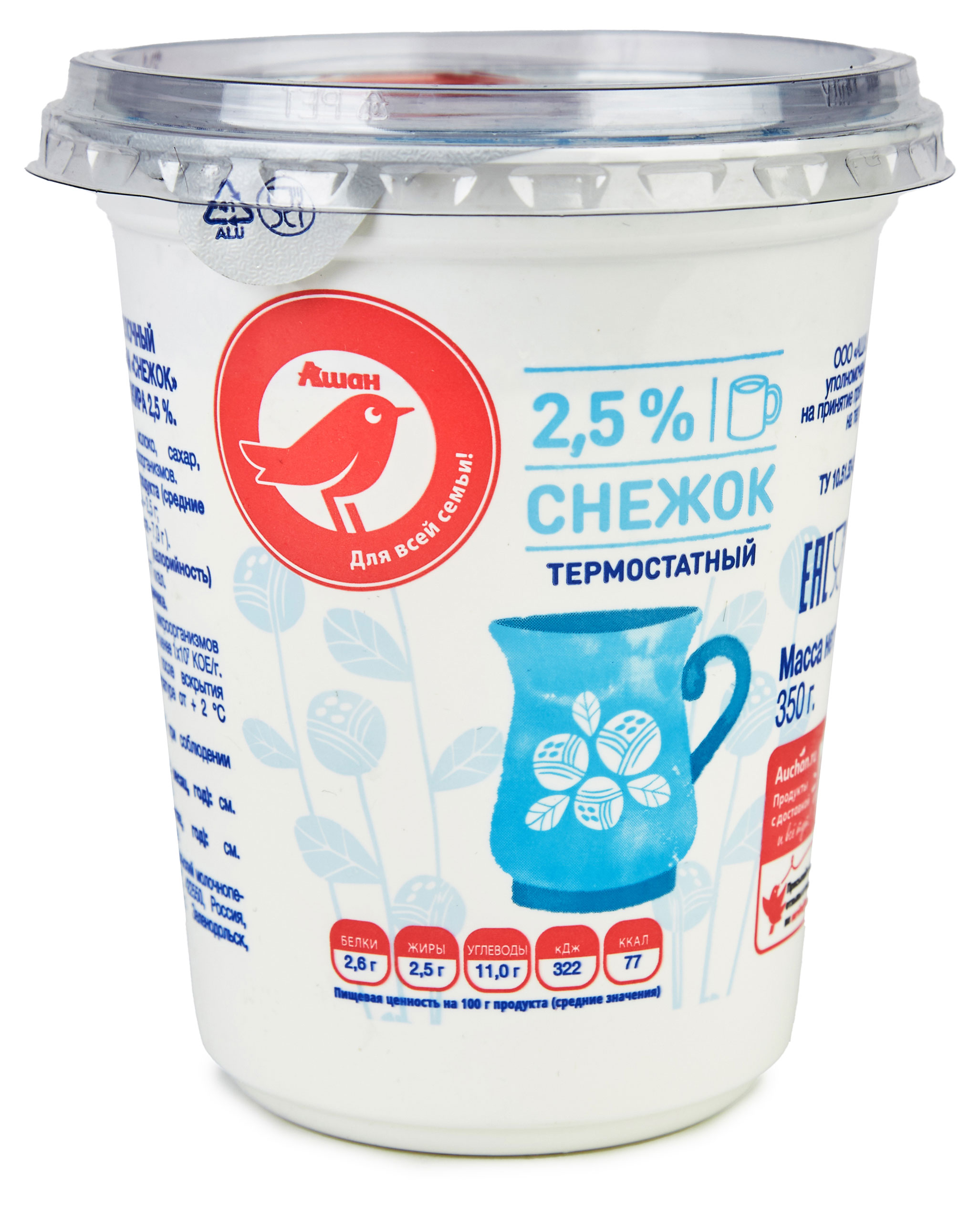 Снежок 2,5% АШАН Красная птица – кисломолочный напиток с нежным сахарным вкусом. Без заменителя молочного жира. Это лакомство многим знакомо еще с советских времен. Традиционно его ценят за сладость, особую вязкую консистенцию и неоспоримую пользу. Молочная кислота в составе снежка благотворно влияет на пищеварение. Балуйте себя и близких чаще вместе с АШАН Красная птица!
