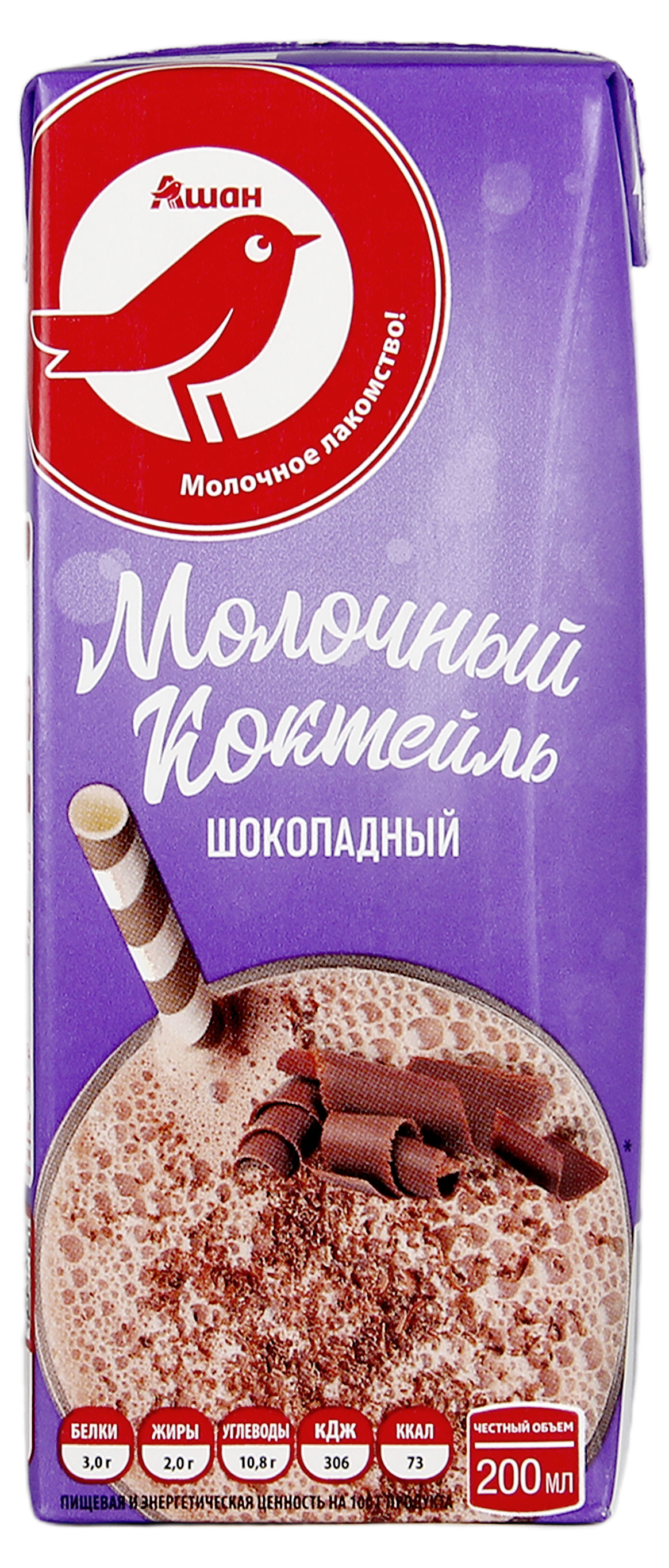 Молочный коктейль АШАН Красная птица - сладкое угощение со вкусом шоколада. Из качественного сырья. Напиток прекрасно утоляет жажду, дарит энергию и прекрасное настроение. Он особенно популярен в качестве легкого перекуса у детей. Компактный формат позволяет взять коктейль в школу или на работу. Наслаждение в каждом глотке!