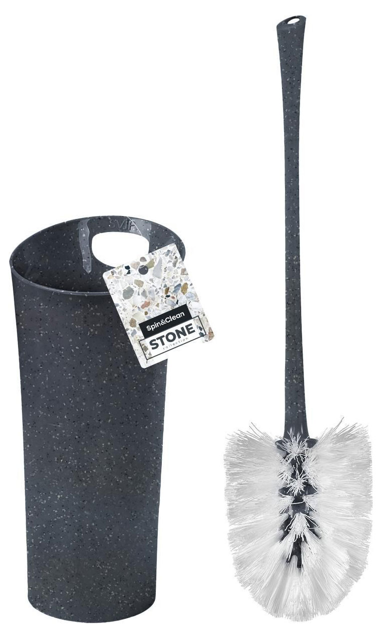 Набор для туалета Spin&Clean Stone с гибкой щетиной с высокой подставкой темный камень, 101х121х440 мм