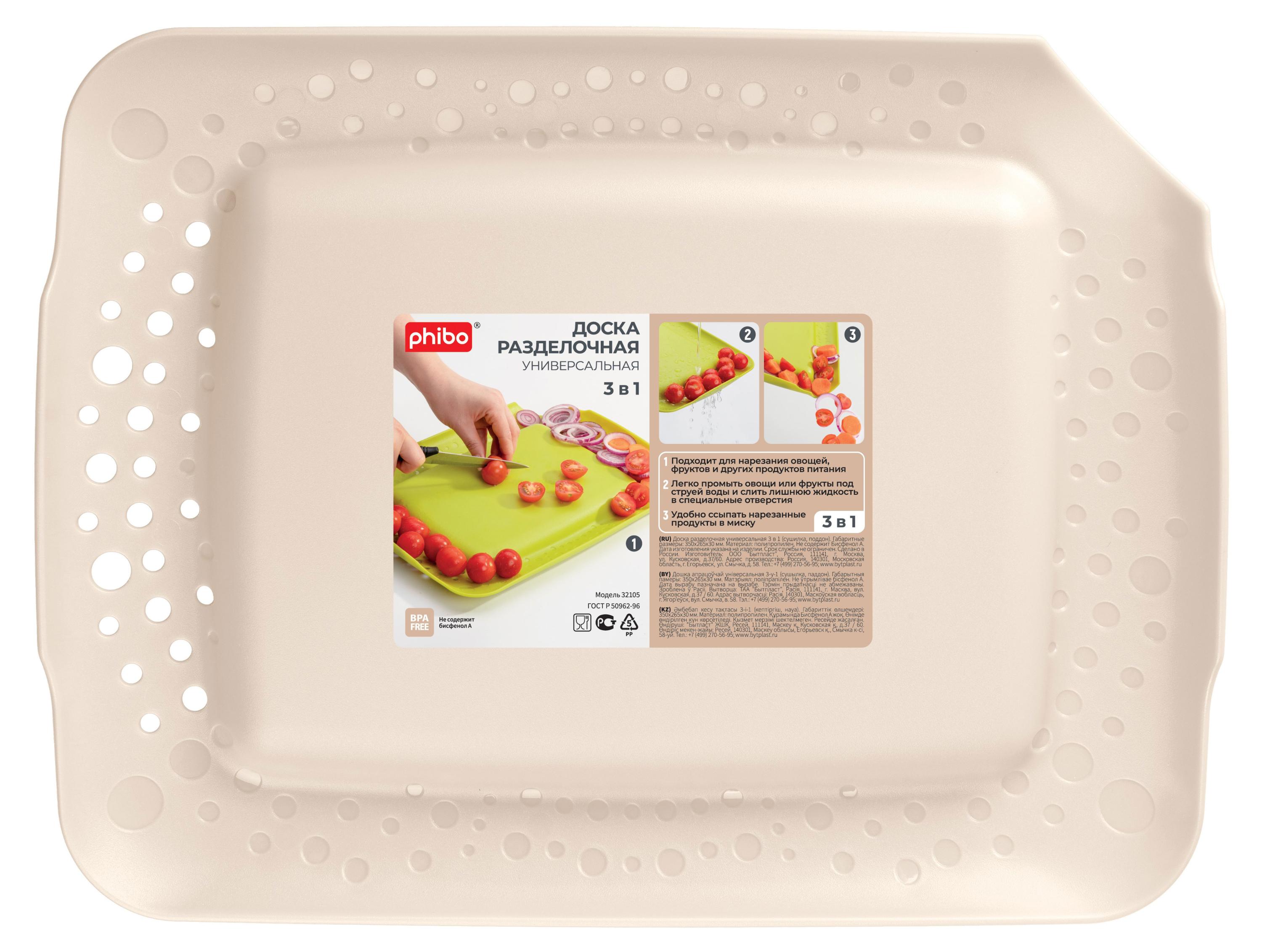 Доска разделочная «Бытпласт» Универсальная 3 в 1, 350х265х30 мм