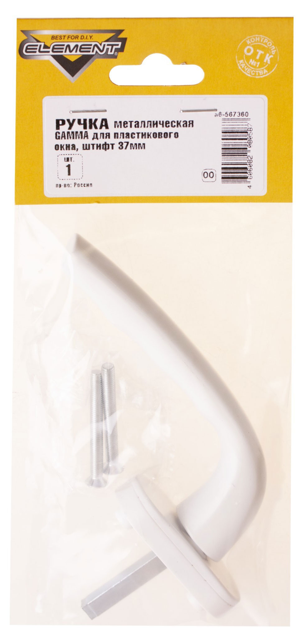 Ручка металлическая Element Gamma для пластикового окна штифт 37 мм белая, 1 шт