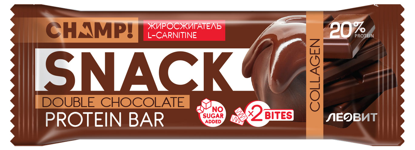 Батончик протеиновый Champ Snack Двойной шоколад без сахара, 40 г