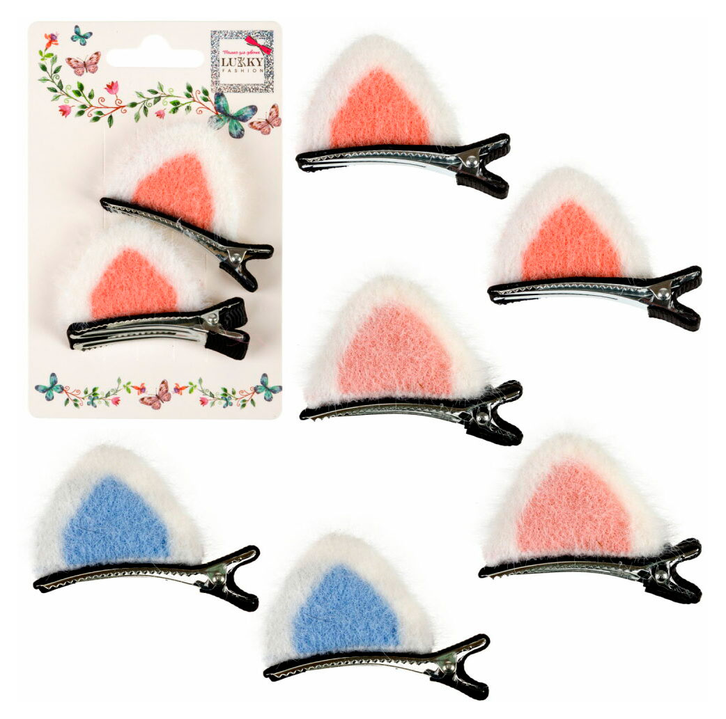 Набор заколок-зажимов Lukky Fashion плюш Ушки Кошки, 2 шт в ассортименте