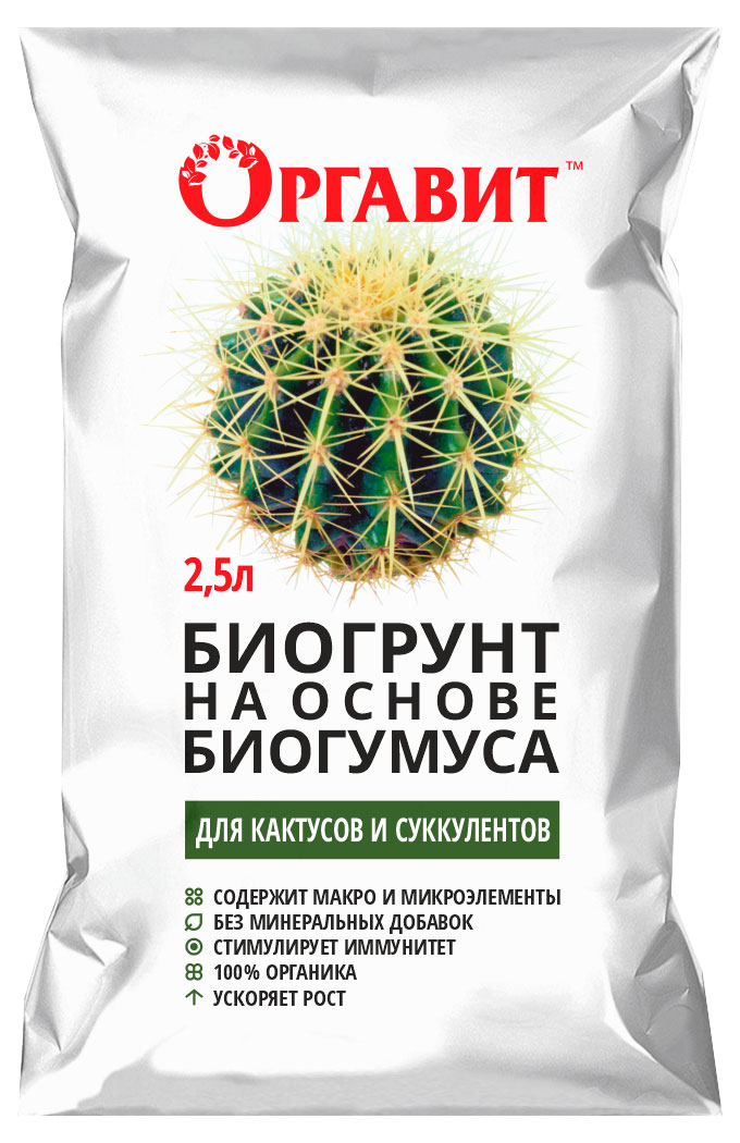 Биогрунт «Оргавит» для кактусов и суккулентов на основе биогумуса, 2,5 л