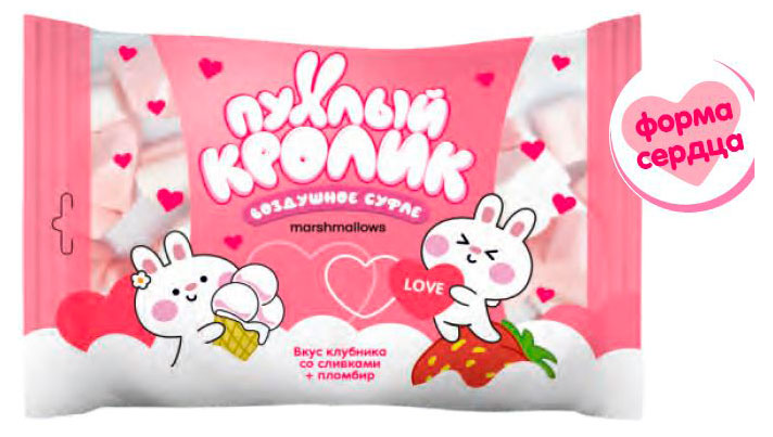 Маршмеллоу «Пухлый Кролик» Ванильный пломбир и Клубника со сливками, 130 г