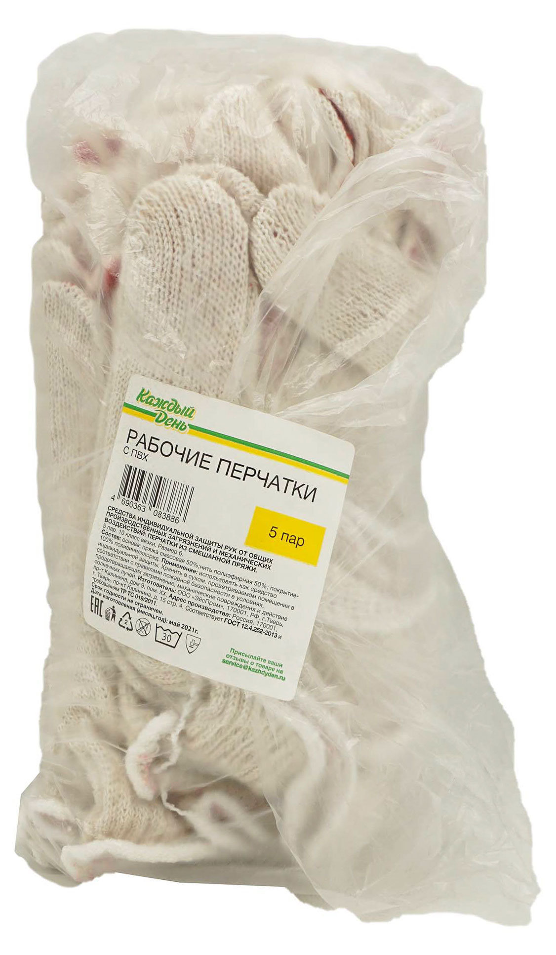 Перчатки рабочие «Каждый День» с ПВХ, 5 пар