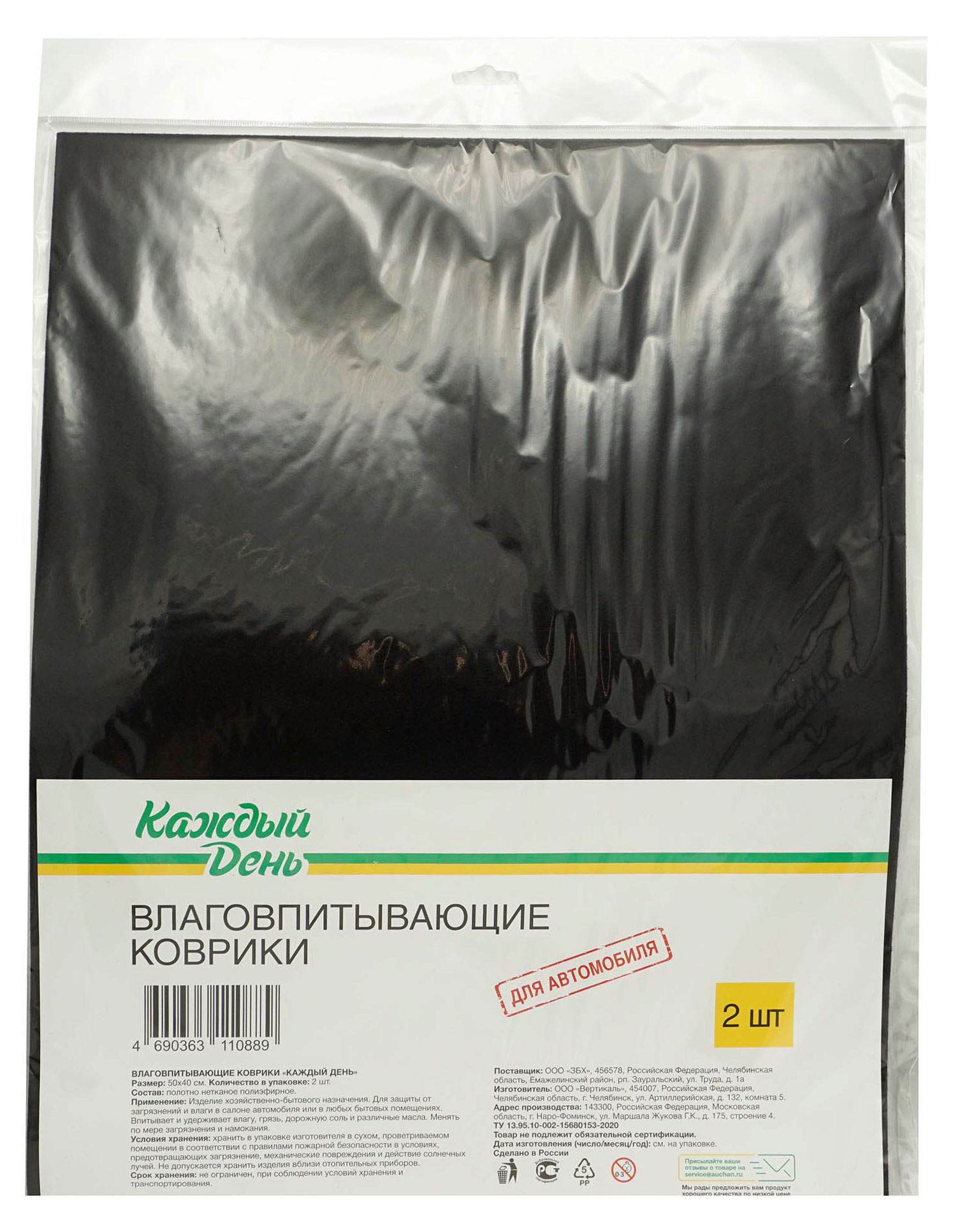 Коврик для салона автомобиля «Каждый день» влаговпитывающий 50x40 см, 2 шт