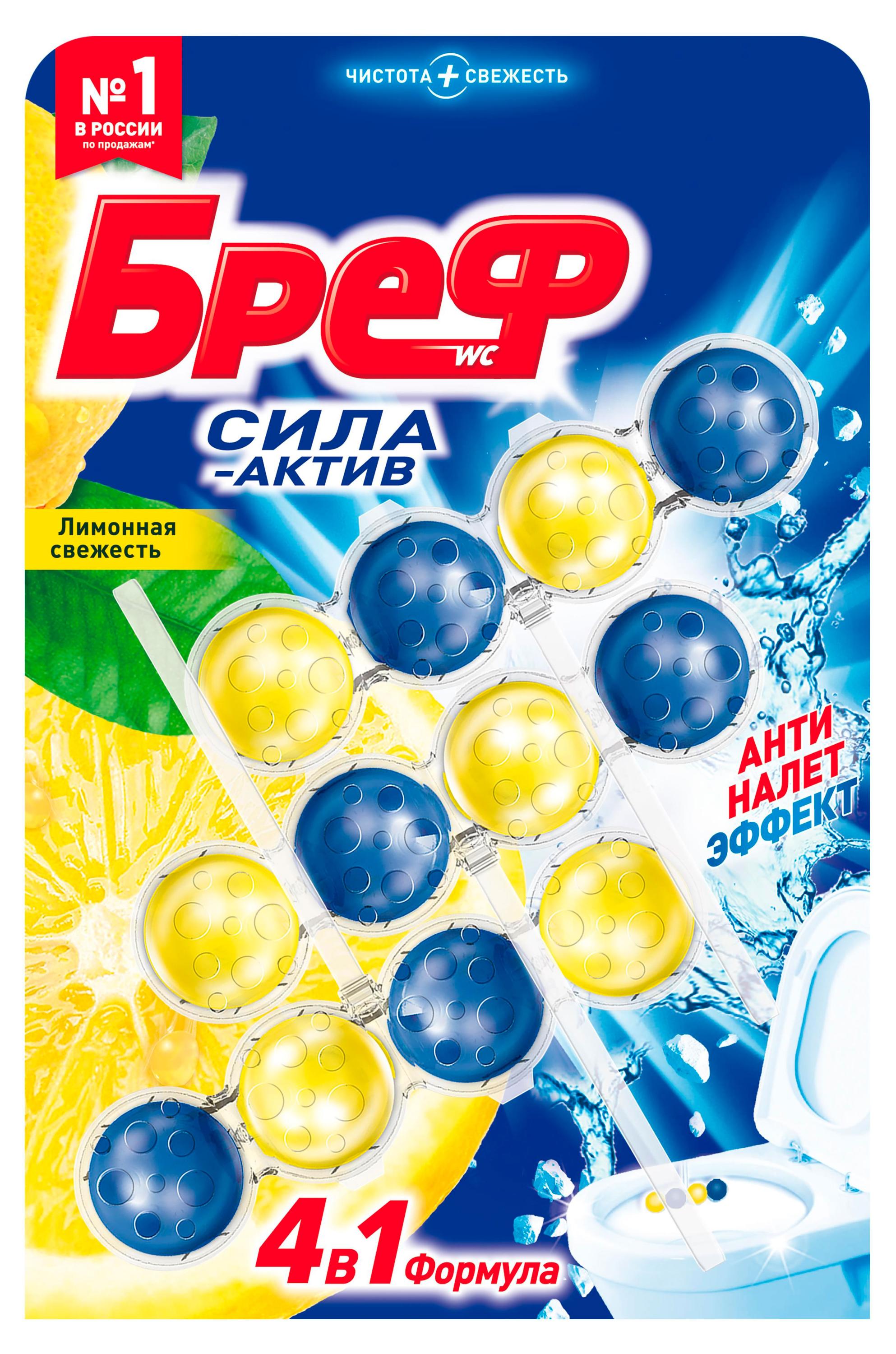 Туалетный блок «Бреф» Сила-Актив Лимонная свежесть 3 блока, 150 г