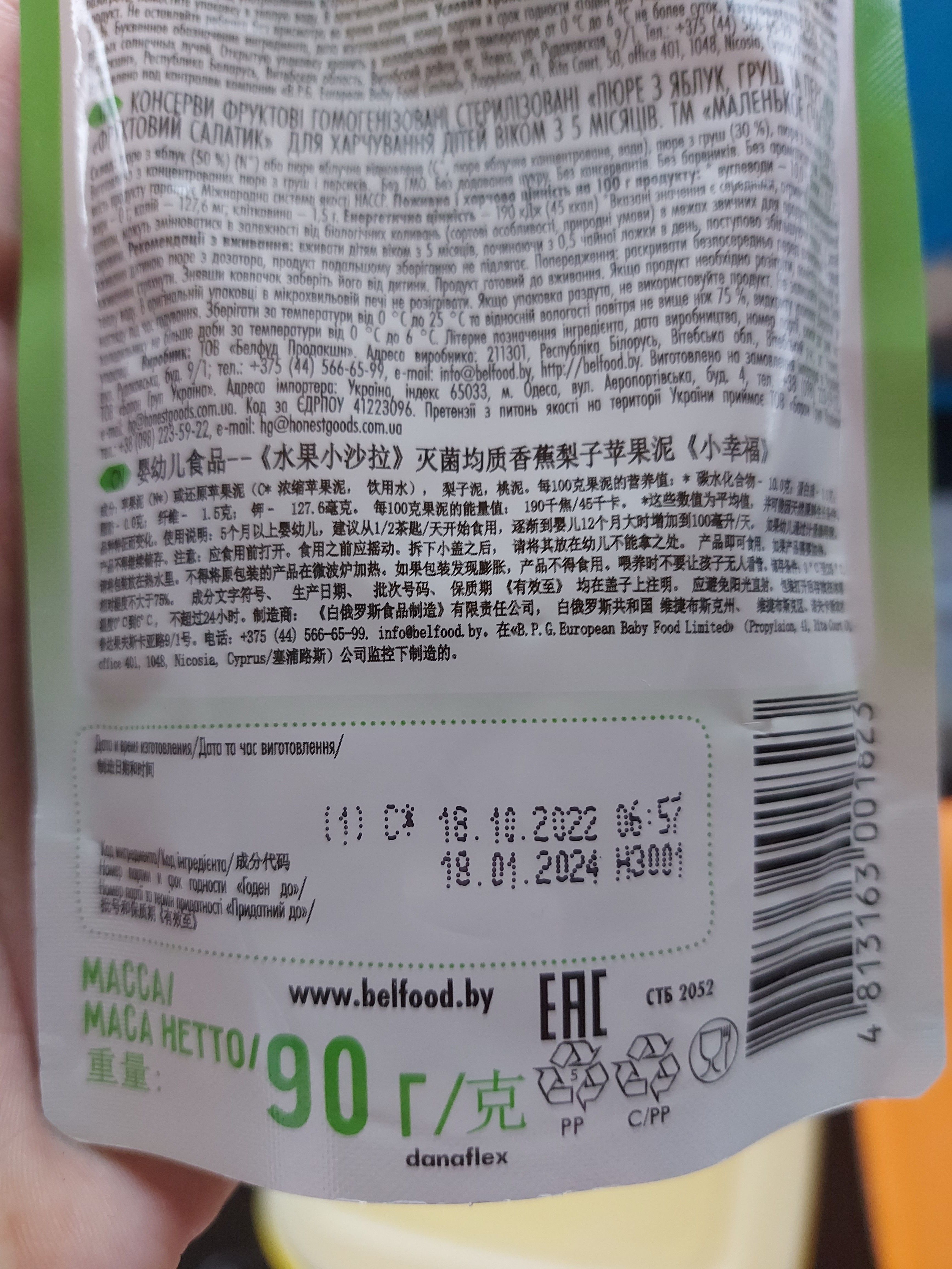 Состав: пюре яблочное, пюре из груш, пюре из персиков