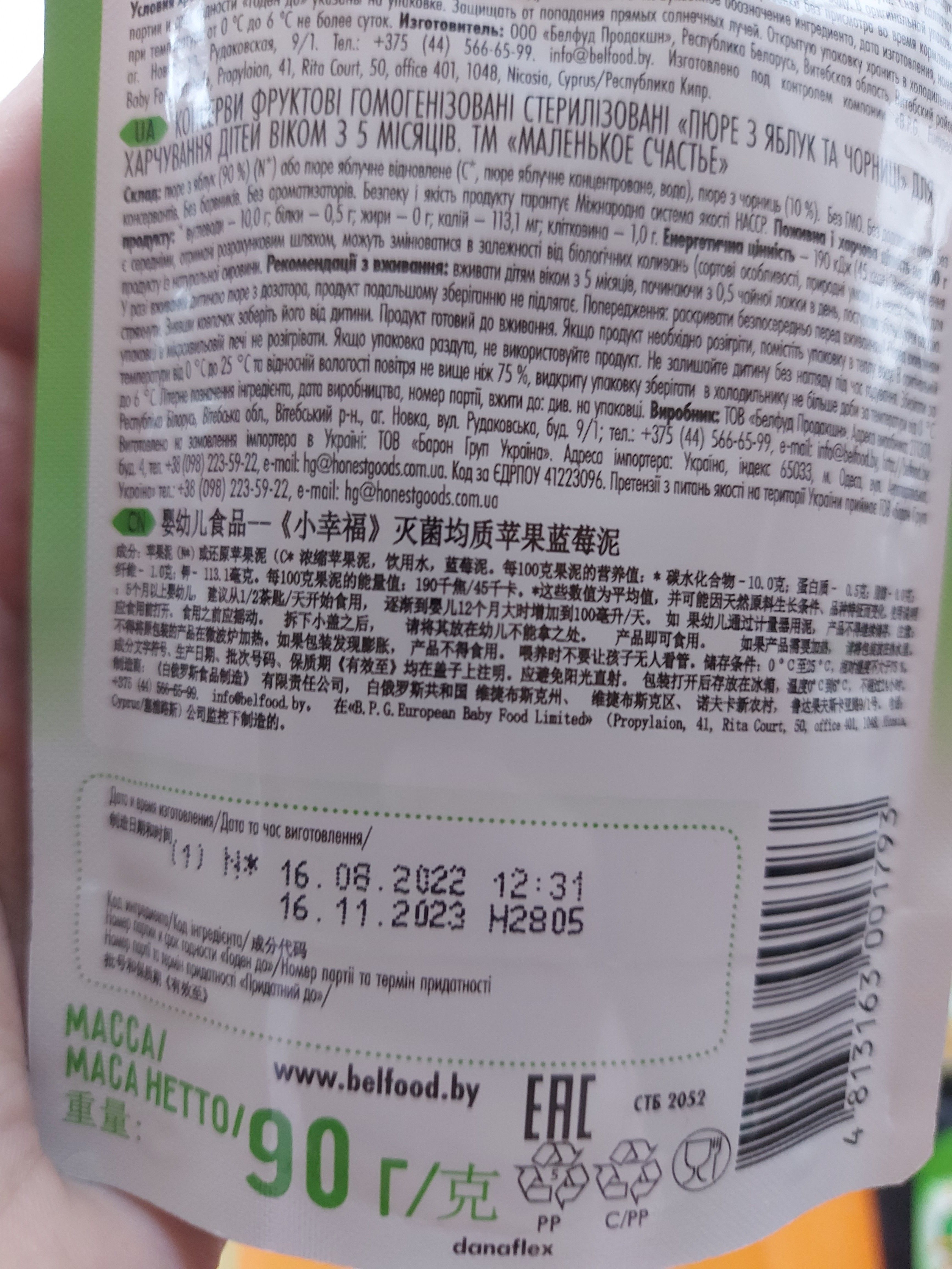 Пюре Маленькое счастье яблоко-черника 90г с 5месяцев
