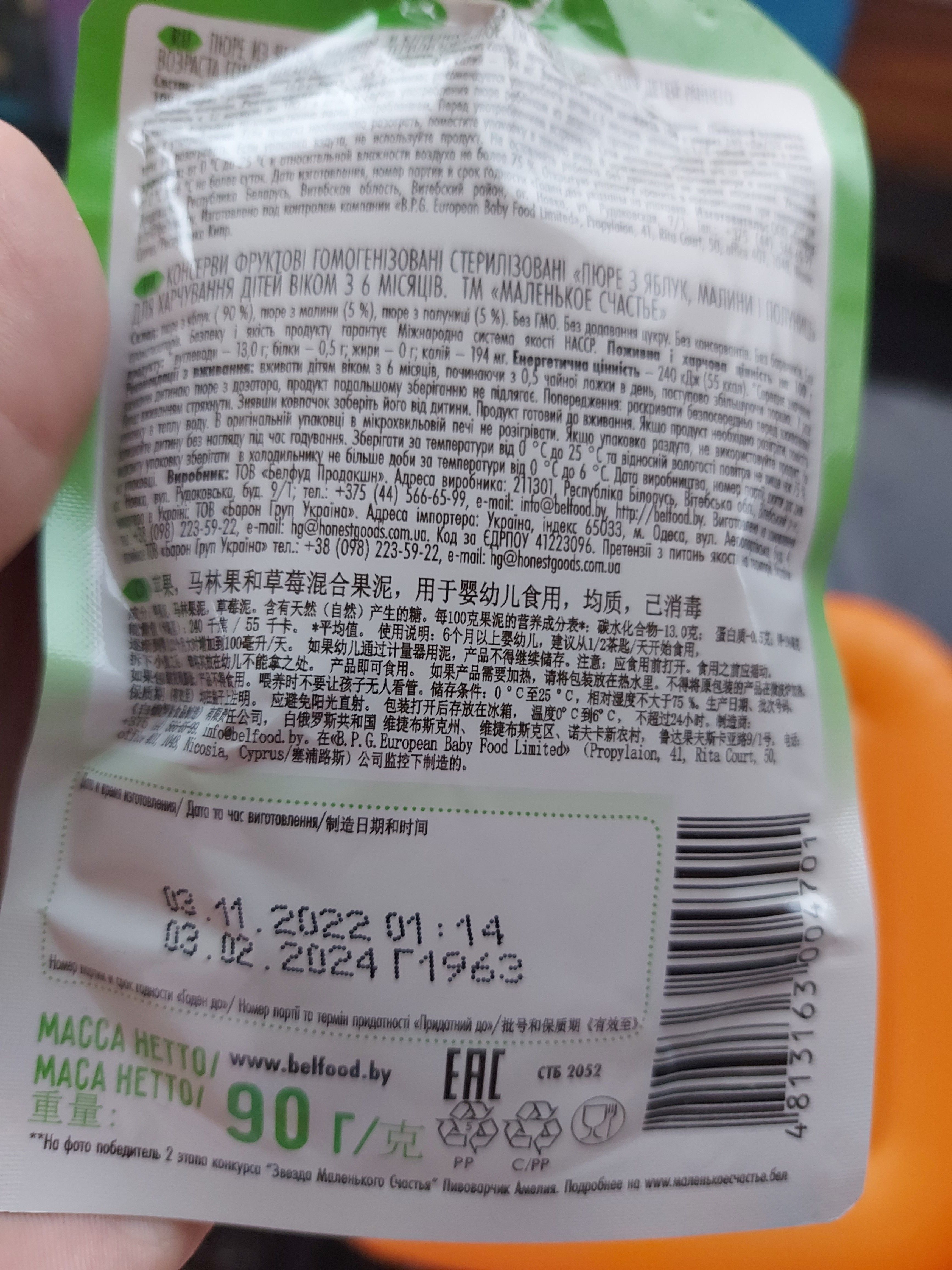 Срок годностиСрок годности пюре составляет 12 месяцев с даты изготовления, которую можно найти на крышке упаковки.