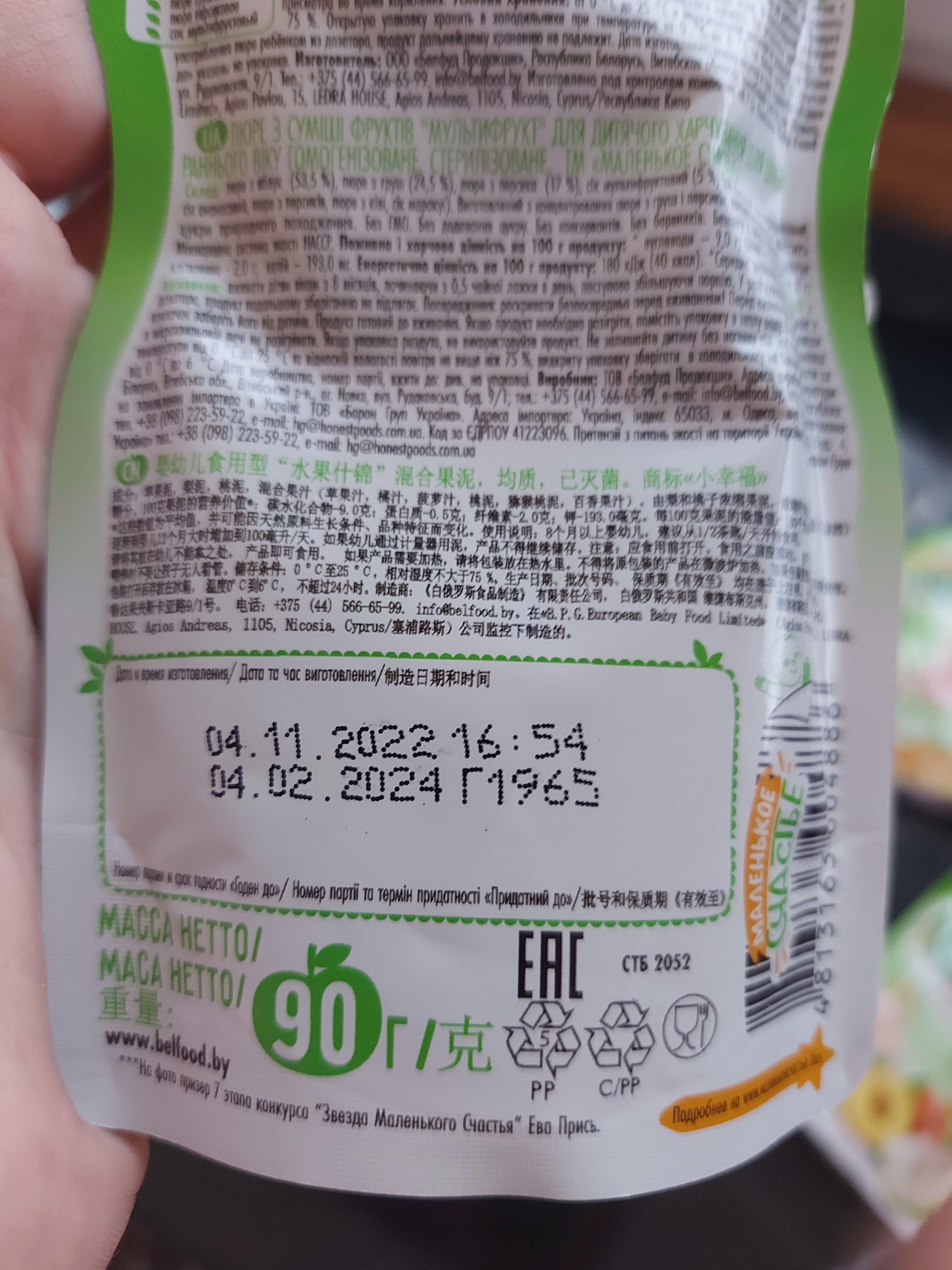 Пюре Маленькое счастье мультифрукт 90г с 8месяцев