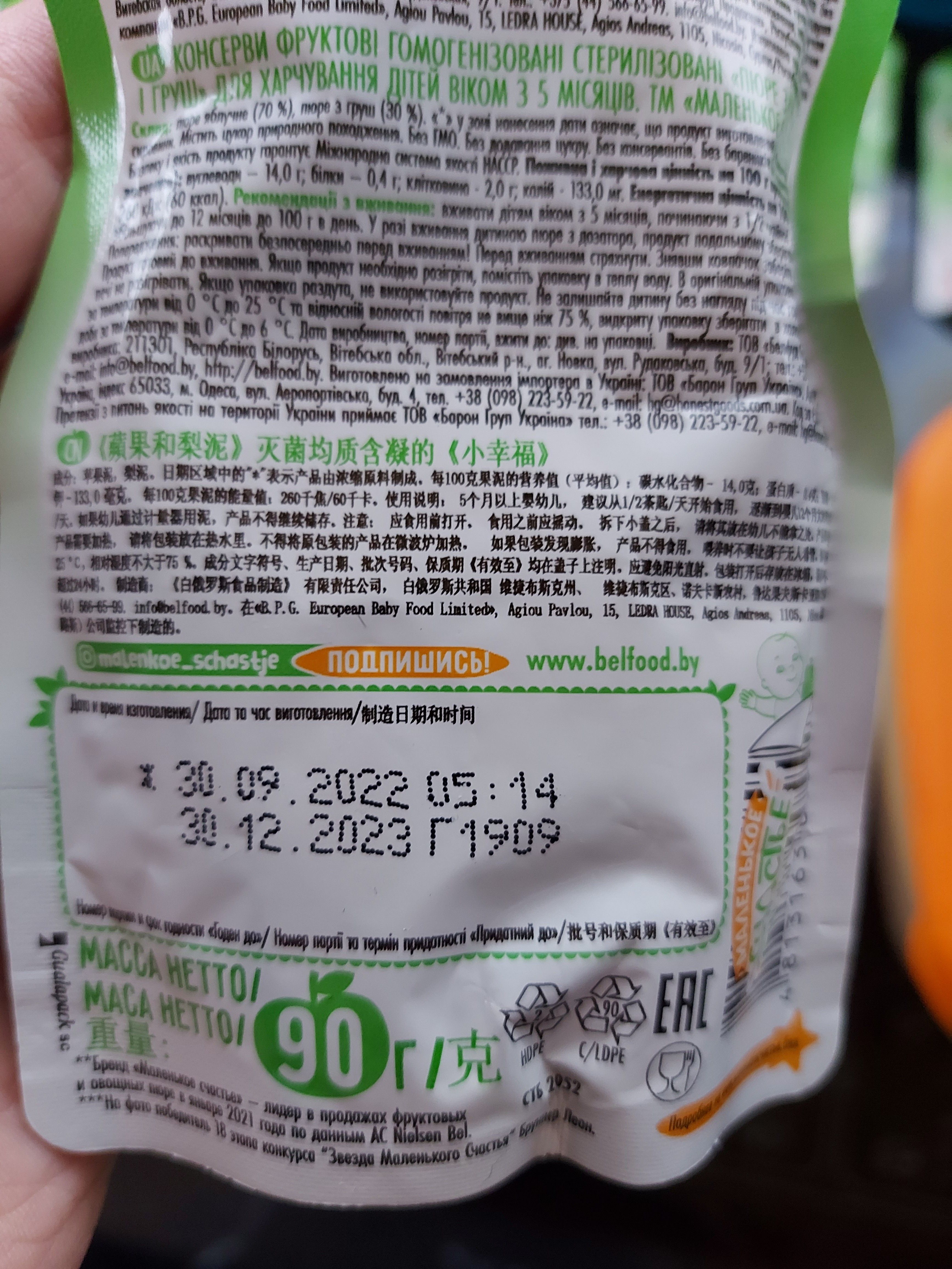 Пюре Маленькое счастье яблоко-груша 90г с 5месяцев