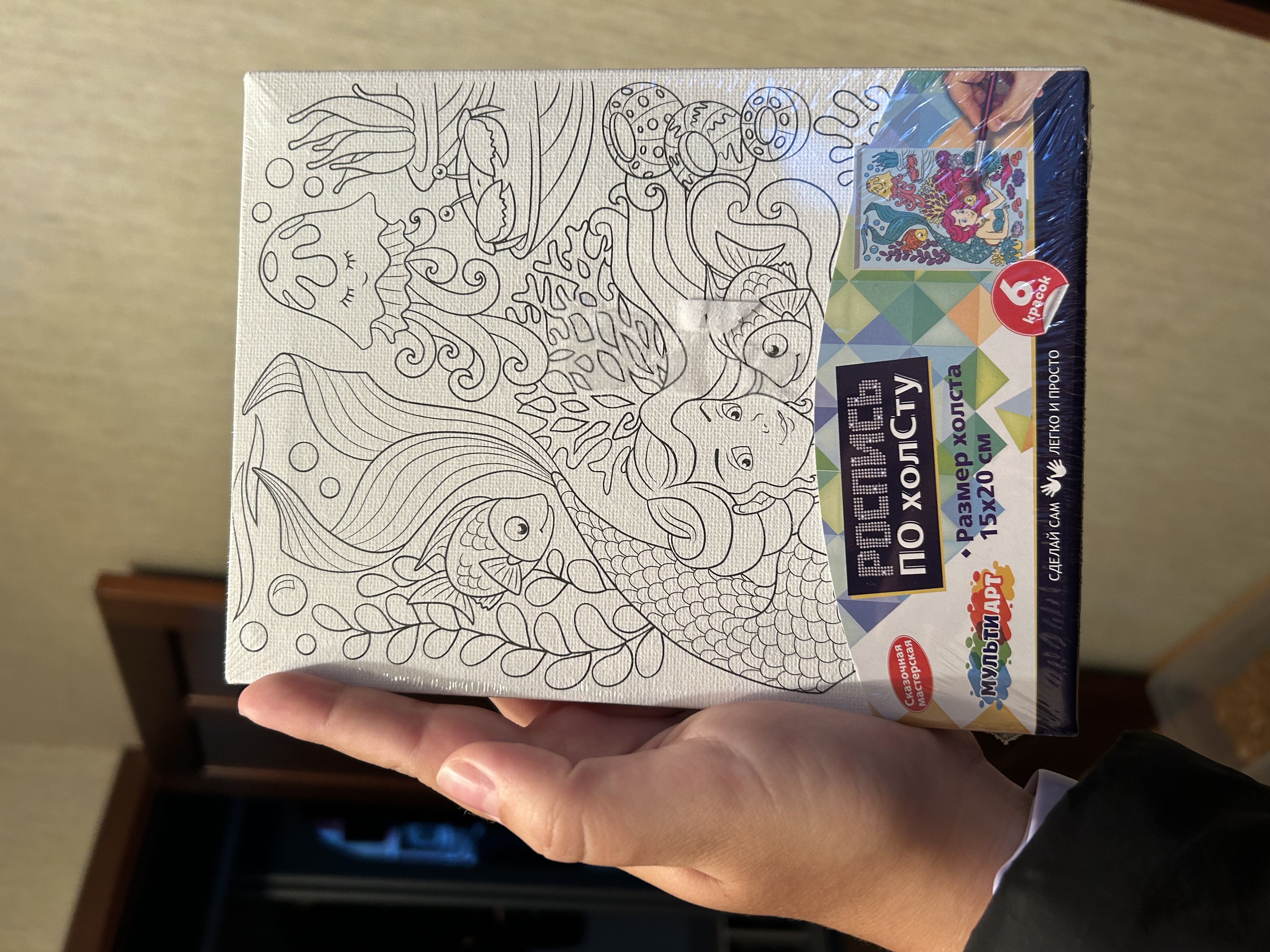 Ребенок увлекательно и полезно проведет время, расписывая холст с изображением очаровательной русалочки. Готовую картину можно использовать для украшения комнаты или в качестве подарка, сделанного своими руками.