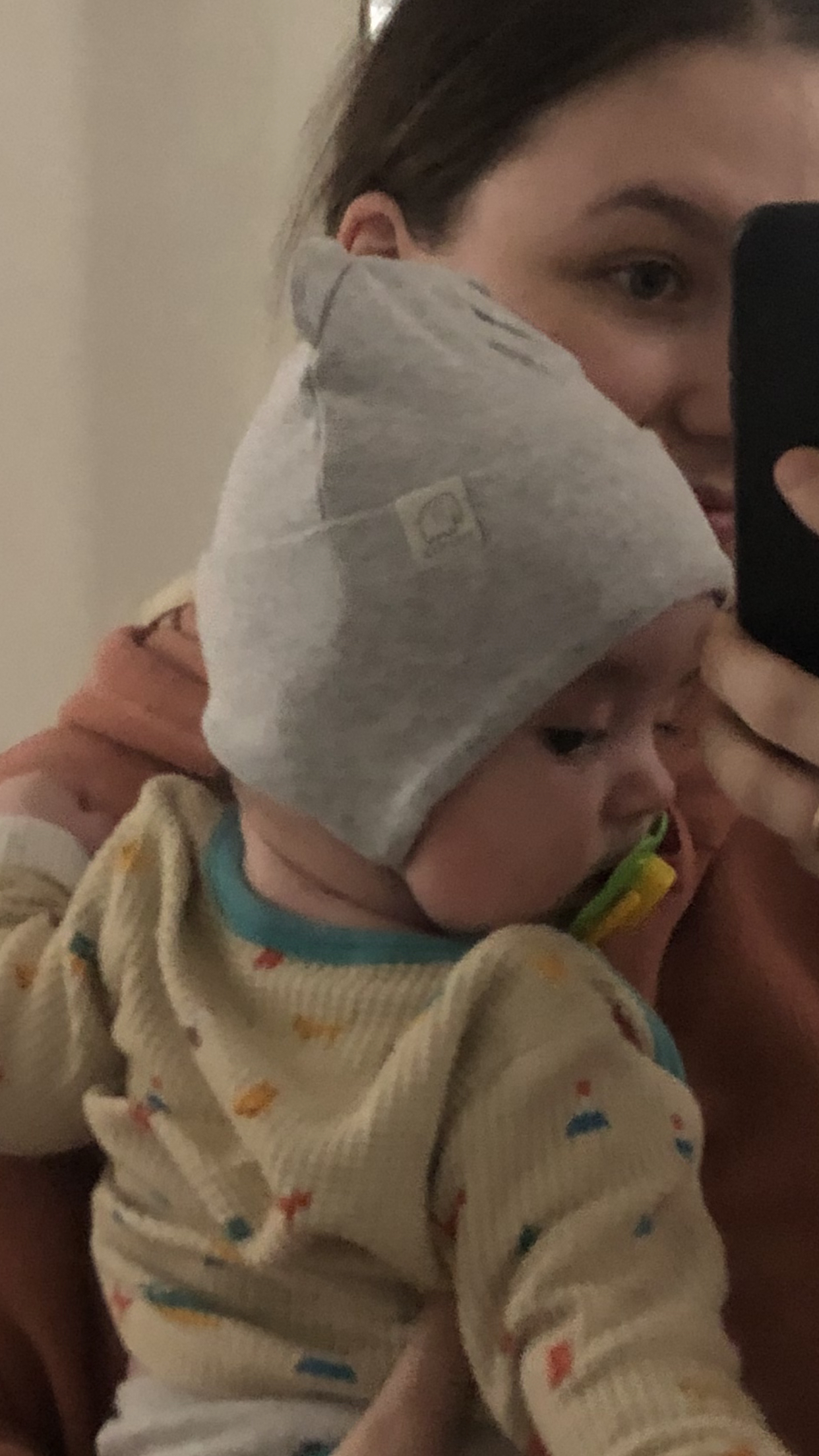 Шапка на завязках для мальчика Baby Go серого цвета с ушками. Декорирована нашивкой.