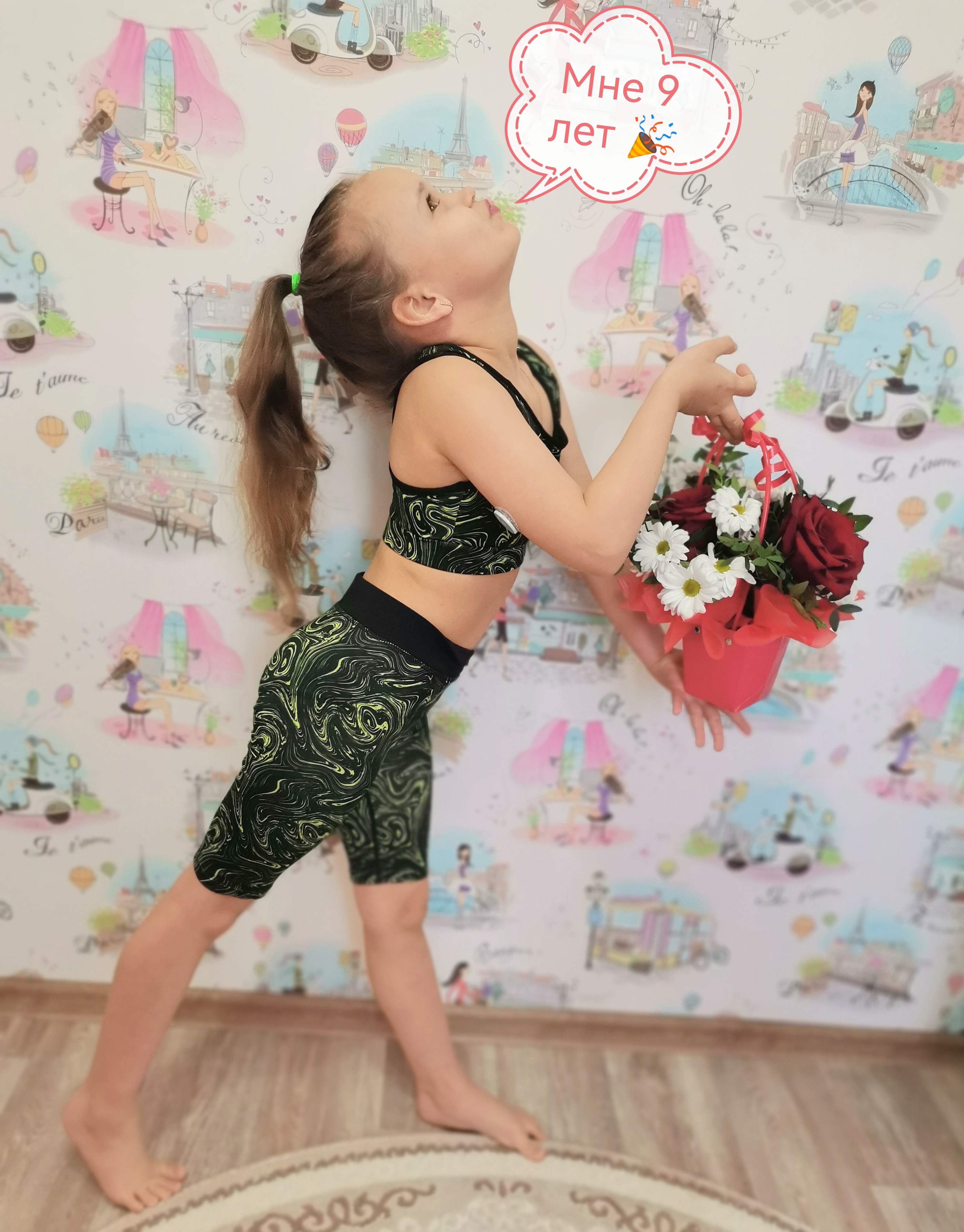 Спортивный топ для девочки Jomoto чёрного цвета с ярким принтом.